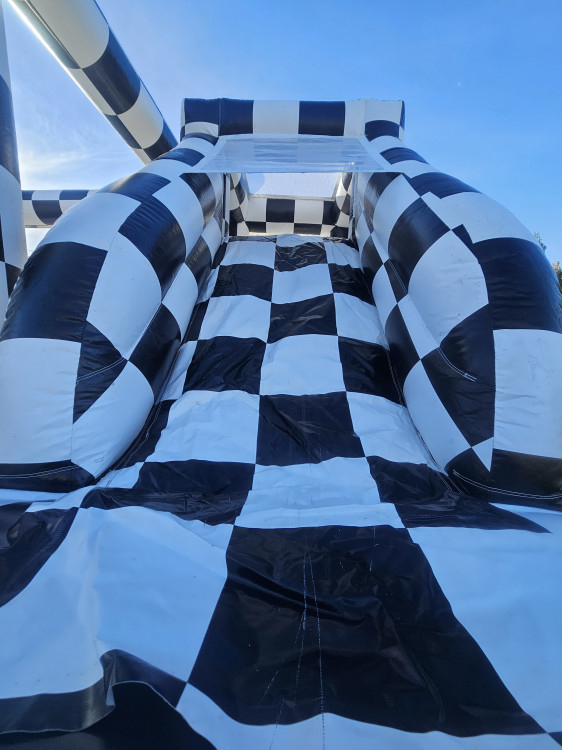 Bring race-day energy with a bold black-and-white checkered slide that stands out in photos and on the lawn. The smooth, single-lane slope, high side rails, and non-slip steps keep rides fast and controlled. Great for birthdays, school events, and racing-themed parties, it sets up on a clear, level area indoors or outdoors with good overhead clearance. Best for kids and teens—check height/weight limits and keep active adult supervision for safe fun.